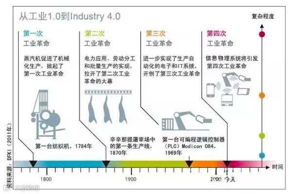 2011年前后,以德国人提出“工业4.0”概念为标志(两年后成为国家战略),互联网技术开始进入并改造大型工业企业。基本上,我们可以把“工业4.0”、物联网、工业互联网这三个分别由德国人和美国人提出的概念相提并论,互换使用,它们都意味着第四次工业革命拉开了帷幕。