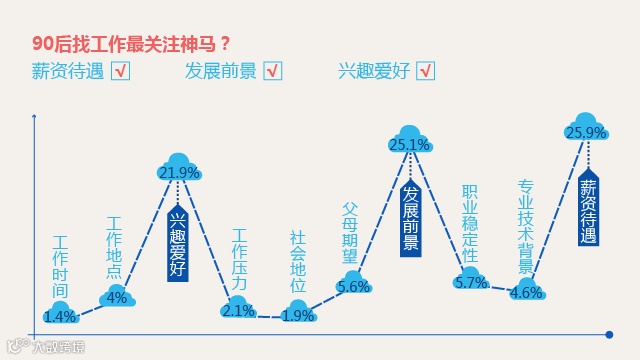 90后是“努力工作,努力玩”的一代。刚步入职场,对职场充满热情的的90后不在乎是否加班,更加注重薪资待遇,关注工作是否有挑战性,并希望对他们的工作成绩即时肯定。