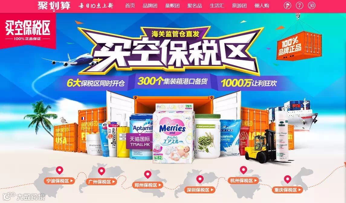 争夺日渐激烈的跨境电商领域,又出现了一个新的“闯入者”。5月11日,聚划算联手国内杭州、宁波、广州、深圳、郑州、重庆六地保税区联手开仓,推出“买空保税区”活动,不仅在消费者中间掀起了一场进口商品的风暴,也标志着聚划算正式“杀”入跨境电商领域。