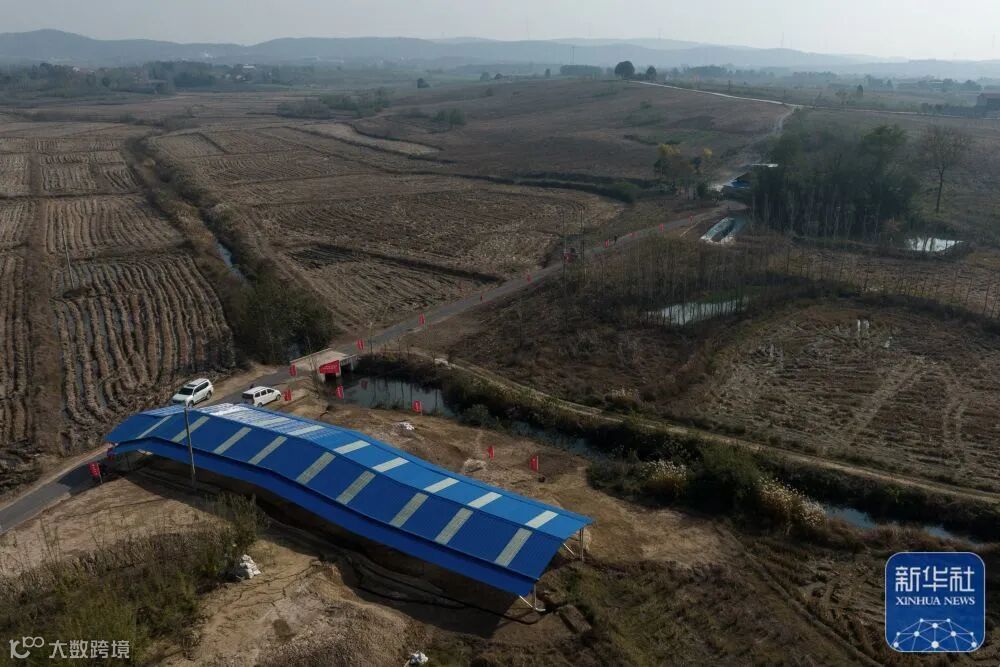 12月4日拍摄的熊家岭水坝遗址现场(无人机照片)。