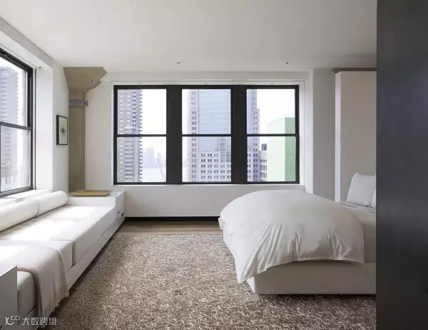 但如果你的卧室够大的话,那么靠窗的位置,就需要充分的利用。在设计圈内设计师常常说“少即是多”。下面的卧室就是很好的例子,即使飘窗放置了舒适的抱枕和一排书籍,但你仍能感受到宽敞的氛围!
