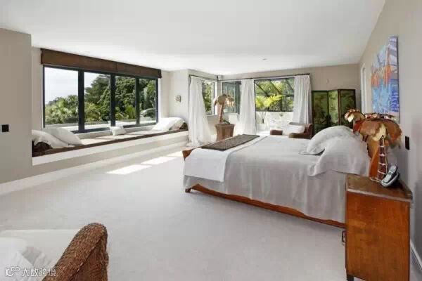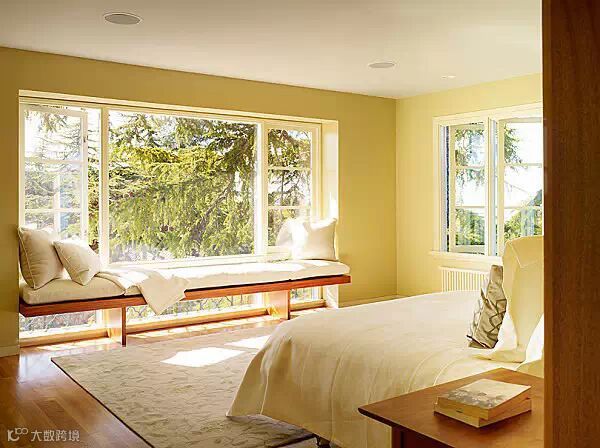 阿联还有一个想法,让户外风景带成为美丽的独秀。如果某些联偶也认同的话,那么需要注意了,尽量保持你的卧室和飘窗的配色是中性色调,衬托出玻璃外的美丽的自然风景。