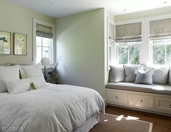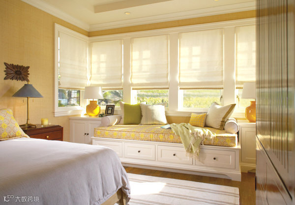 卧室设有飘窗阿联想没有比这更美妙的事了!如果你的卧室空间比较小,而飘窗的设计正是小空间巧妙的解决方案。没有沙发、没有扶手椅,但你有飘窗。这间乡村风的卧室采用了温馨的中性色调,飘窗的一侧留有足够的空间延伸,可以放你最喜爱的书籍!