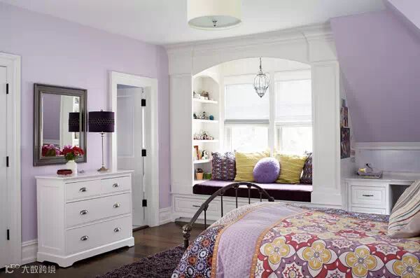 福利来了,其实飘窗的设计不一定长就是最舒适的,即使你的窗户很小,也可以设计一张坐垫!下面旧金山这间阁楼设有一个较小的飘窗,配有窗帘且完美融入了温馨的卧室里。