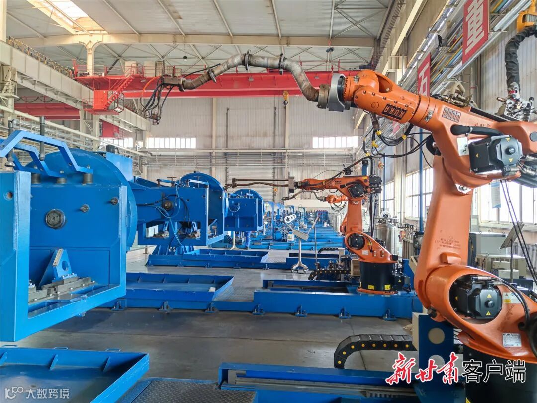 兰石集团重装炼化公司焊接数字化车间,焊接机器人正在进行焊接作业。