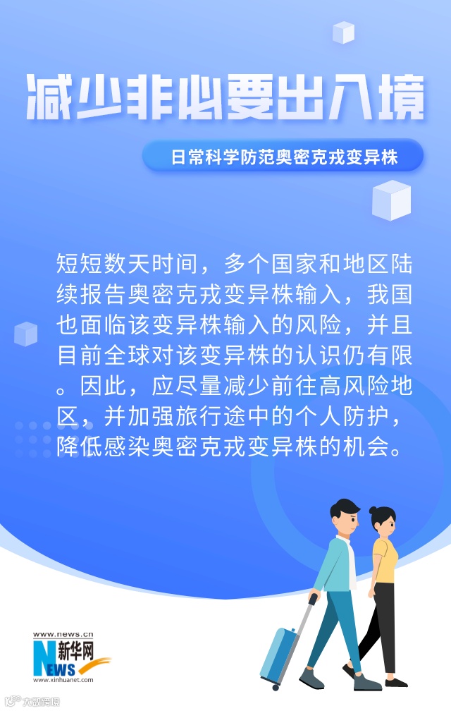 导读:面对奥密克戎变异株公众在日常工作、生活中应如何做好防范?这七条关键提示不能忘来源:新华网