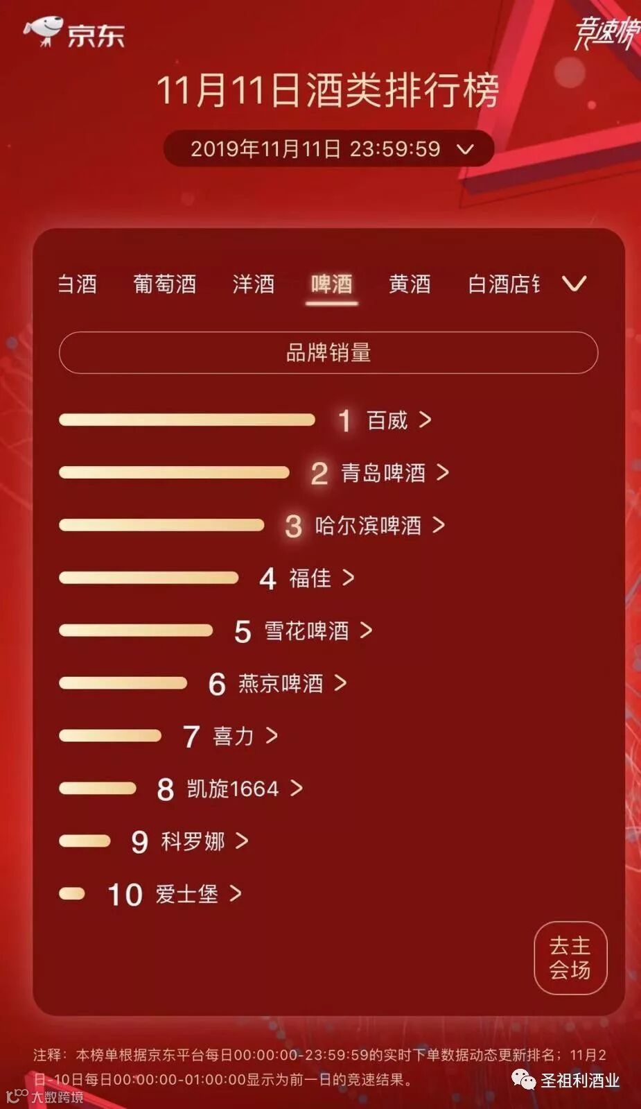据京东官方数据显示,截止上午9点,京东超市葡萄酒、啤酒品类整体1小时成交额达到了去年同期6倍。其中,精酿啤酒、进口啤酒成交额是去年同期10倍,洋酒整体成交额是去年同期4倍。品牌方面,11月11日1小时,葡萄酒品牌奔富的成交额是去年同期20倍,长城以及黄尾袋鼠的成交额也取得了去年同期10倍的成绩,杰克丹尼整体成交额是去年同期6倍,马爹利整体成交额是去年同期3倍。