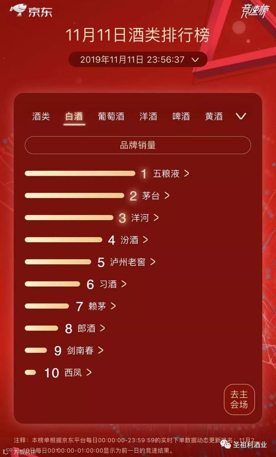截至11日12点,五粮液、茅台两大巨头,分别以第二和六的排名登榜天猫快消品品牌排行榜TOP前10,显示了超强的品牌实力。