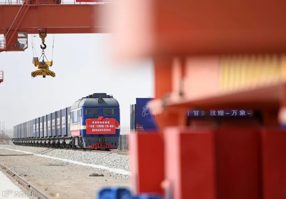 2022年4月21日,甘肃首趟中老铁路国际货运列车在敦煌市铁路西货站综合货场等待发车。新华社记者 陈斌 摄