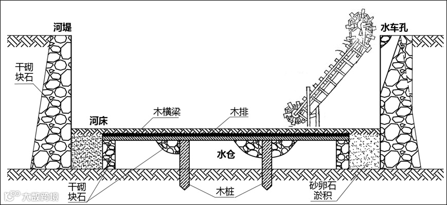 溪井四壁以块石和松木叠砌,垒砌成井字形,用松木为梁柱,开口处用松木、条石覆盖,防止河沙淤积。在极端干旱年份,打开溪井,架设水车,进行提水灌溉。