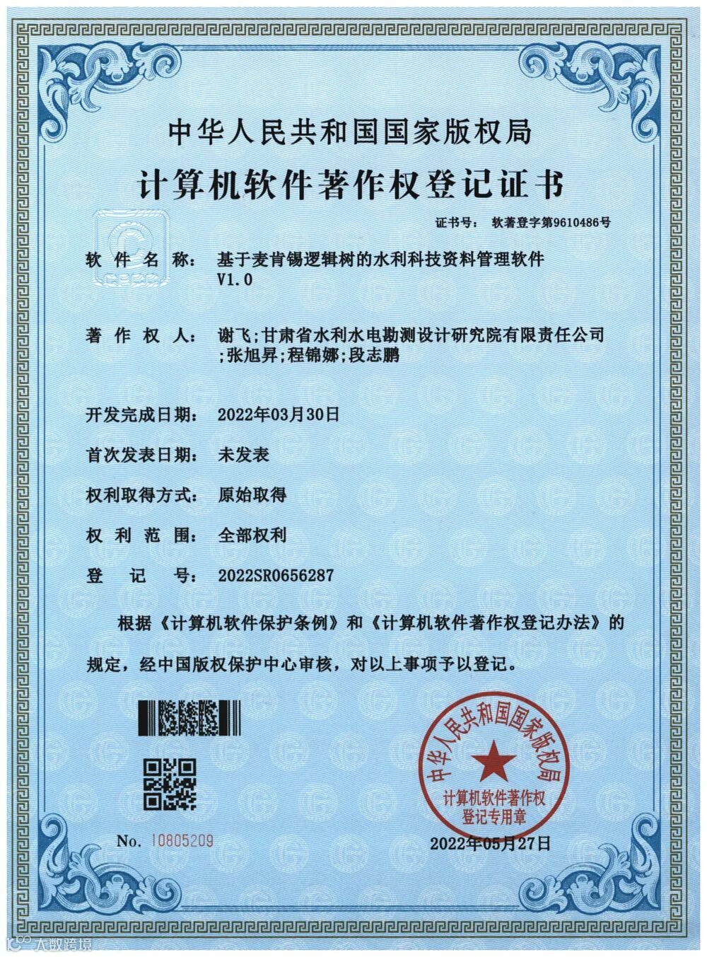 公司规划院同时荣获三项计算机软件著作权登记证书