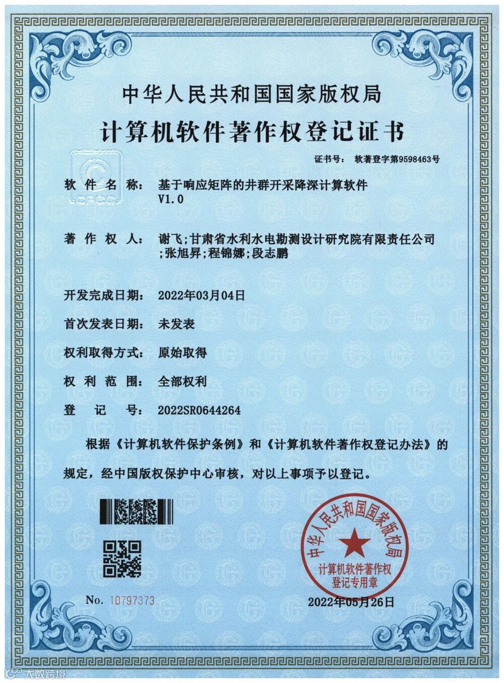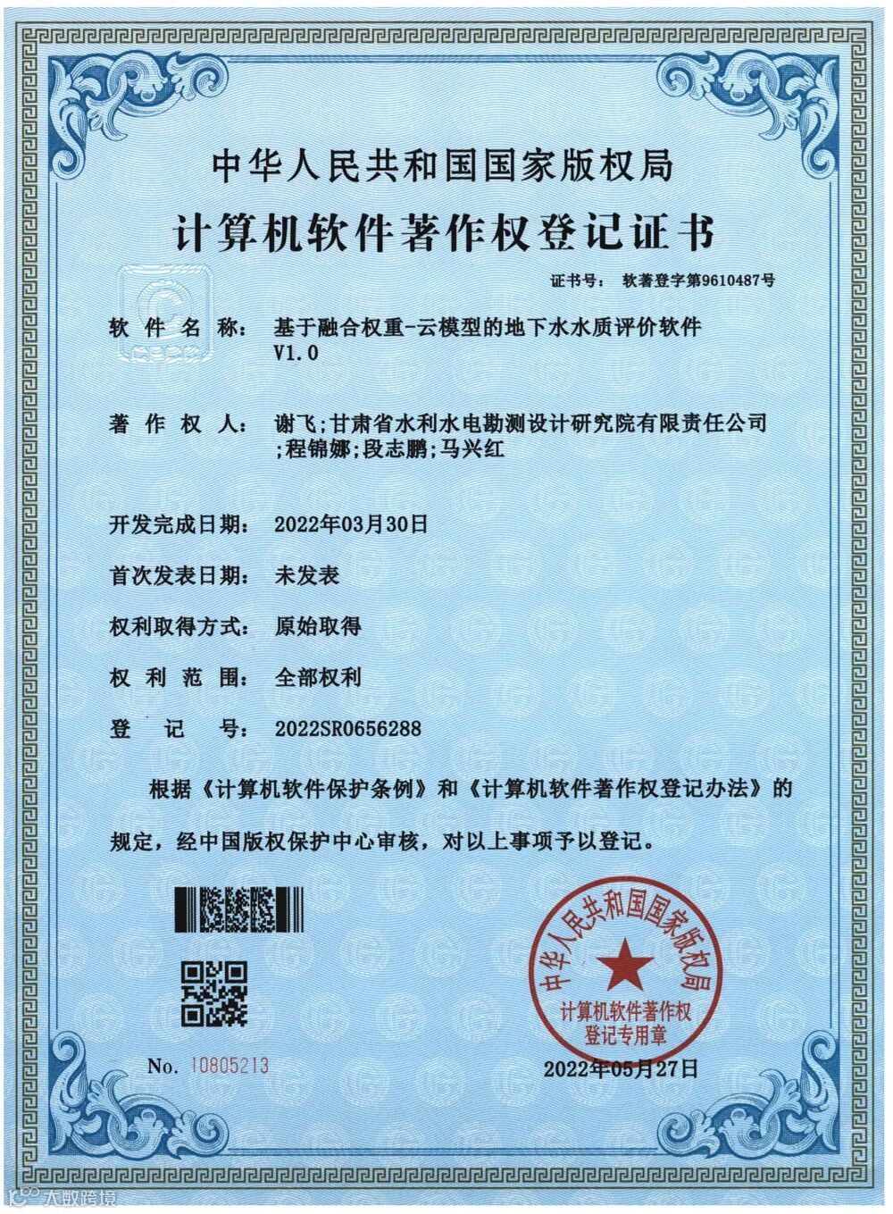 近日,由规划院自主研发的《基于响应矩阵的井群开采降深计算软件》《基于融合权重-云模型的地下水水质评价软件》《基于麦肯锡逻辑树的水利科技资料管理软件》3项计算机软件获得著作权登记证书,填补了规划院在该领域的空白。