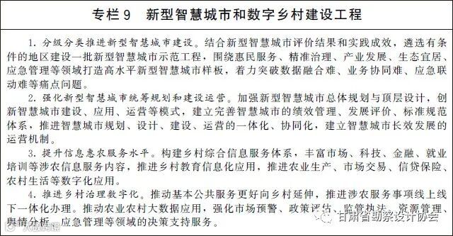 (三)推动数字城乡融合发展。统筹推动新型智慧城市和数字乡村建设,协同优化城乡公共服务。深化新型智慧城市建设,推动城市数据整合共享和业务协同,提升城市综合管理服务能力,完善城市信息模型平台和运行管理服务平台,因地制宜构建数字孪生城市。加快城市智能设施向乡村延伸覆盖,完善农村地区信息化服务供给,推进城乡要素双向自由流动,合理配置公共资源,形成以城带乡、共建共享的数字城乡融合发展格局。构建城乡常住人口动态统计发布机制,利用数字化手段助力提升城乡基本公共服务水平。