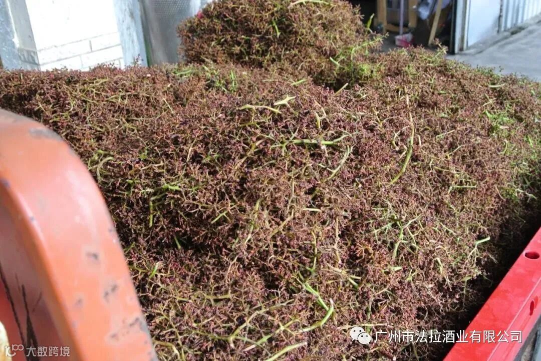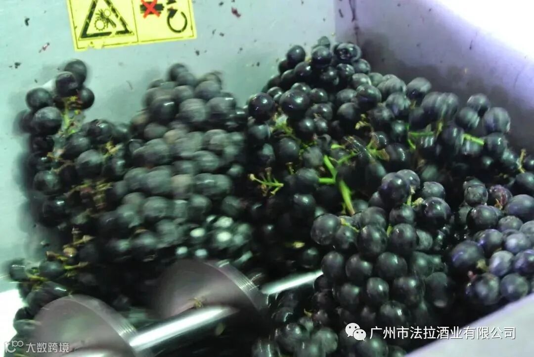 15. 葡萄去梗后,会经由传送带传送到贮存容器,然后再被传送到发酵器皿中。