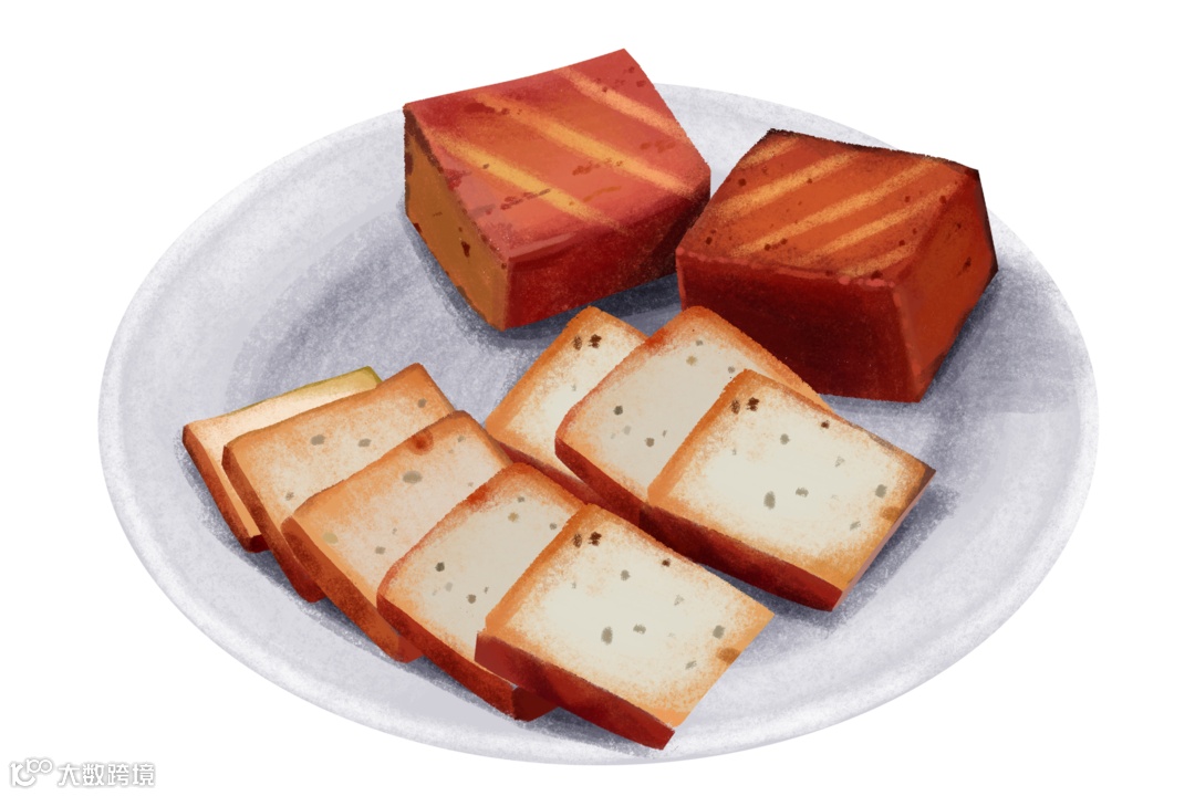 1.先用上等小黄豆做成豆腐,并切成圆形或方形的块状。