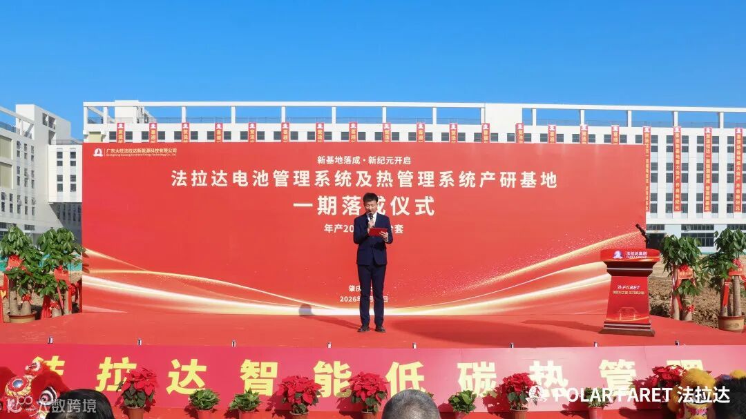 法拉达电池管理系统及热管理产研基地一期项目落成仪式如期而至。现场高朋满座、星光熠熠。肇庆高新区党工委江泽全书记、陈凯宏副书记及相关单位负责人,时代广汽动力电池有限公司查鸿山副总经理、广汽研究院陈学文人工智能首席科学家、合作伙伴、业界同仁悉数到场,与法拉达全体家人共同见证这一历史性时刻。