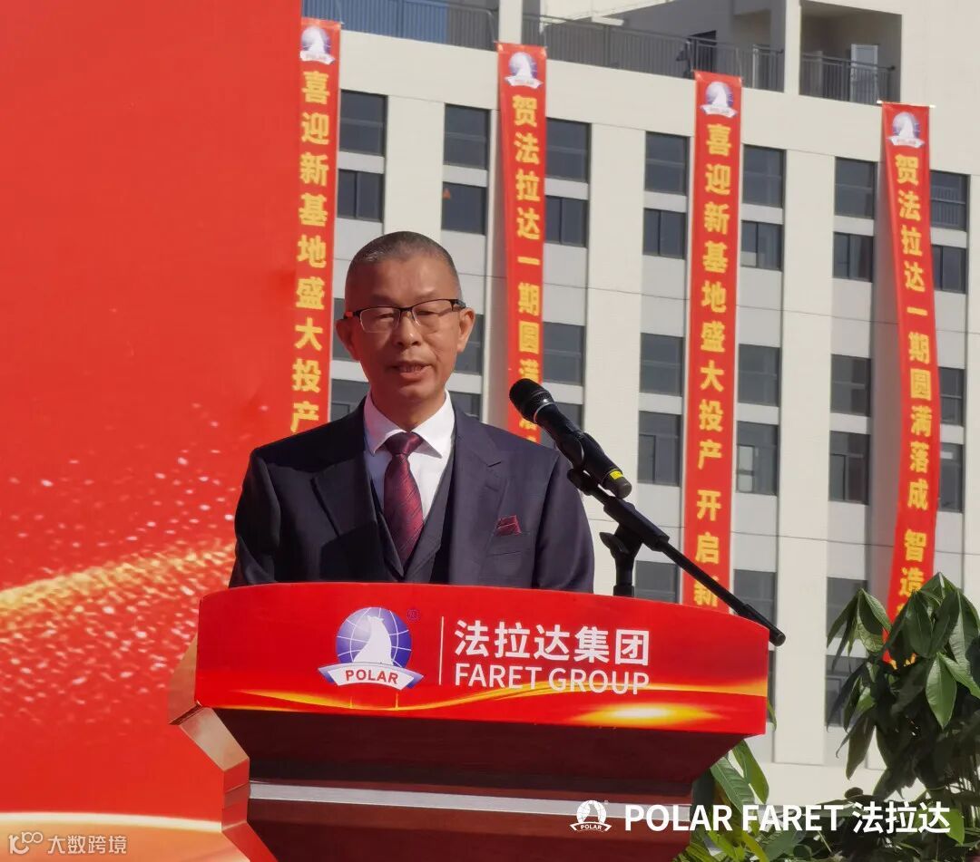 随后董事长张建发先生登台,向各级党委政府、合作伙伴、建设者及法拉达人致谢。原计划 2027 年投产的项目在各方助力下提前落地,彰显了相关推进速度与良好营商环境。未来,集团将聚焦热管理、储能等相关领域协同发展,深化产业链合作,二期项目达产后将进一步助力企业高质量发展与地方经济增长,集团也将坚守实业、坚持创新、服务社会。