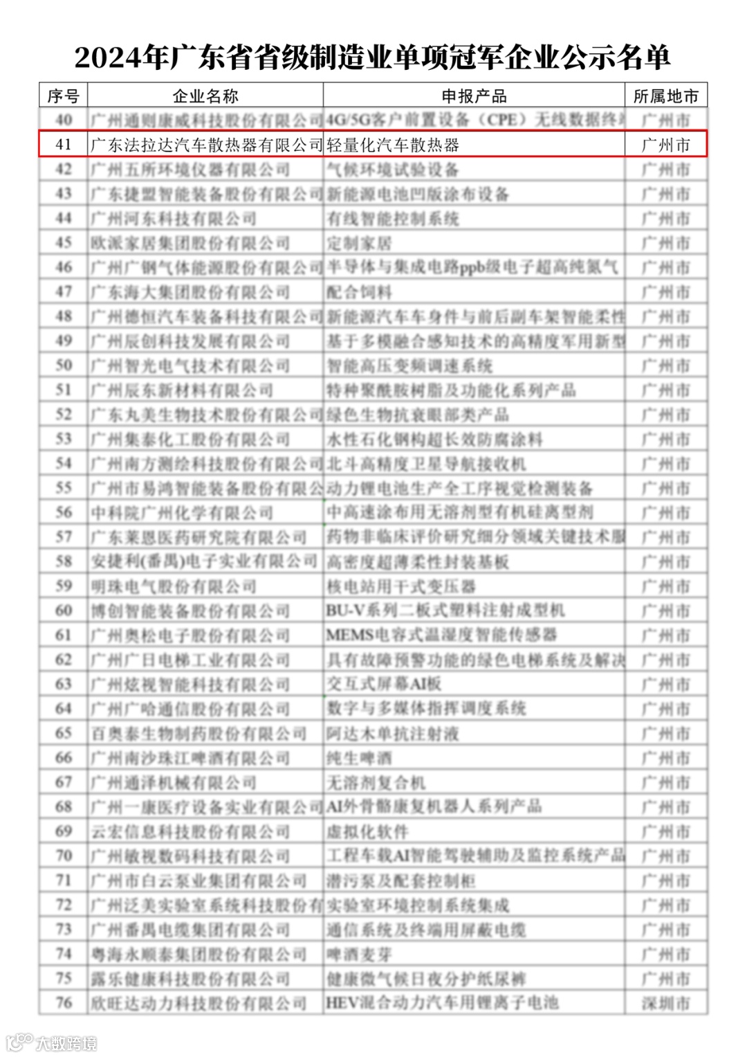 2024年广东省制造业单项冠军企业公示名单