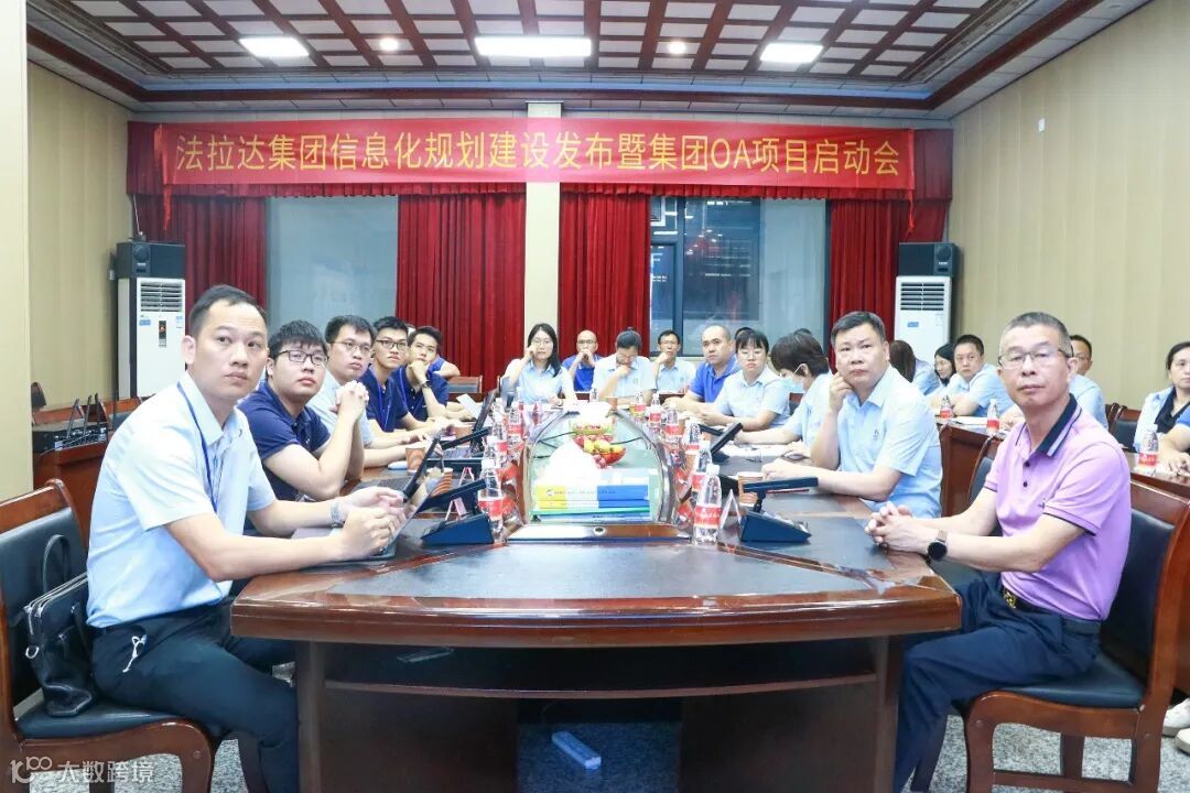 2023年5月18日上午,法拉达集团信息化规划建设发布暨集团OA项目启动会圆满成功,是集团迈向信息化建设的新里程碑。法拉达集团董事长张建发先生,集团总经理何耀星先生,蓝凌股份软件有限公司客户经理吴培林先生,以及法拉达各部门领导干部出席此次启动会议。
