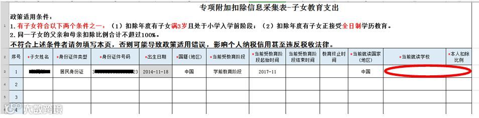 如,纳税人在填写子女教育支出时,比较多容易漏填“当前就读学校”或者“本人扣除比例”等信息。如果这些信息漏填,将无法将子女教育支出相关信息导入扣缴客户端,也就无法享受该项扣除。遇到该情况,可以请单位办税人员检查后告知需要补充填写漏填事项。