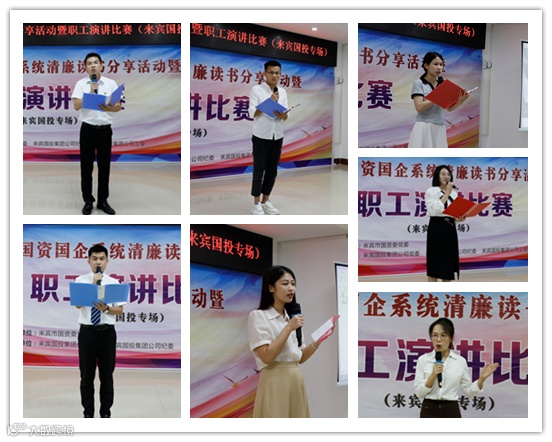 此次活动为来宾国投专场,由来宾国投集团党委、纪委和工会承办,共有来自各企业单位的20余名党员职工参加比赛。活动紧紧围绕清廉国企、清廉工会建设的总要求,突出“读廉书•扬清风•倡廉洁•树正气”主题,通过参赛选手上台演讲的形式向广大党员干部职工分享“读廉书”的所思、所感、所得,并从多维度讲述了国企人廉洁从业的重要性和必要性。20位演讲选手身着正装、精神饱满,结合身边的鲜活事例,在台上声情并茂、慷慨陈词,用心、用情表达了国企人廉洁从业的信心和决心。