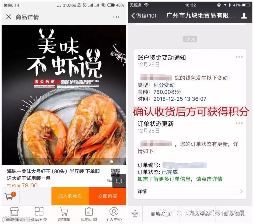 购买综合区内产品可获得佣金外,还可以获得购买产品的等值积分(部分商品除外),例:综合区内您购买了价值78元的大虾后,可获得780个积分: