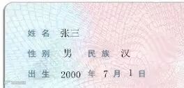 身份证事例(以下内容清晰可见)