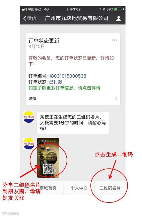 2、 点击生成个人专属二维码名片,并分享朋友圈,邀请好友扫码关注。