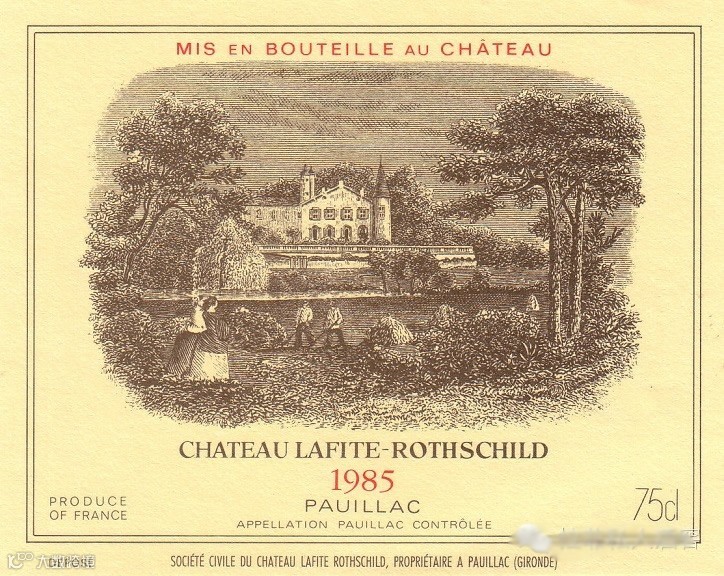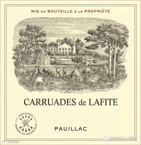 事实上,拉菲庄园正牌和副牌的酒标(商标)均是一幅种植葡萄的园丁在城堡前的庄园里劳作的半写实图标,正牌酒标上工整的写着法文:Chateau Lafite Rothschild(拉菲城堡),副牌写着:Carruades de Lafite(拉菲卡许阿德)。