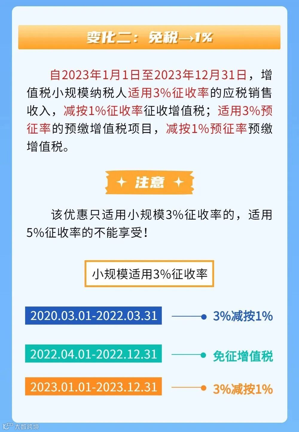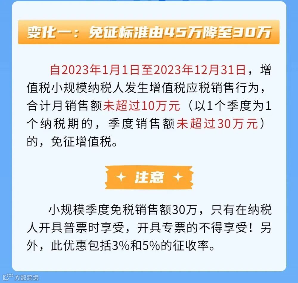 财政部、税务总局联合发布《关于明确增值税小规模纳税人减免增值税等政策的公告》(财政部 税务总局公告2023年第1号),公布了增值税小规模纳税人减免增值税相关政策,政策与去年相比有三大变化。