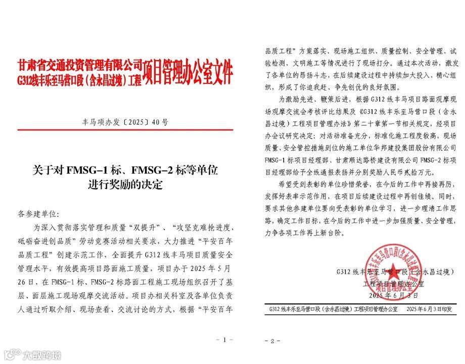 甘肃丰马一标项目获省市级相关奖项
