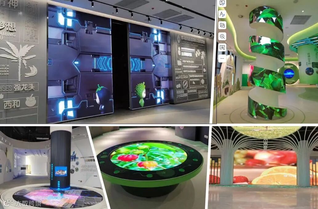 2023年7月,为助力广西崇左凭祥水果博物馆开馆,康硕展定制了一套涵盖生命树、圆形屏、轨道屏等多种类型的LED创意屏,显示面积达360㎡。生动的画面展示,为博物馆打造了独特的视觉体验,有效提升了场馆的吸引力。
