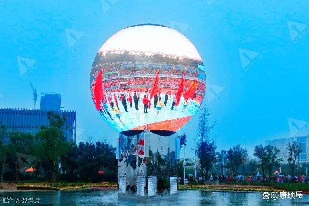作为户外场景的 “主力型” 产品,箱体/模组屏通过标准化LED显示箱体或模组的拼接,实现球形曲面的完整覆盖。其核心优势在于高分辨率与易维护性;模块化设计让故障维修更高效,单个箱体损坏时无需整体停机,仅需更换对应部件,大幅降低户外场景的维护成本与停机损失。此外,箱体采用IP65及以上防护等级的防水防尘材质,框架选用高强度铝合金,可抵御12级以下强风与-30℃~50℃的极端温度,适合安装在城市广场、商业综合体户外广场、体育场馆外围等人员密集区域,用于赛事直播、公益宣传、品牌广告等高频展示场景。
