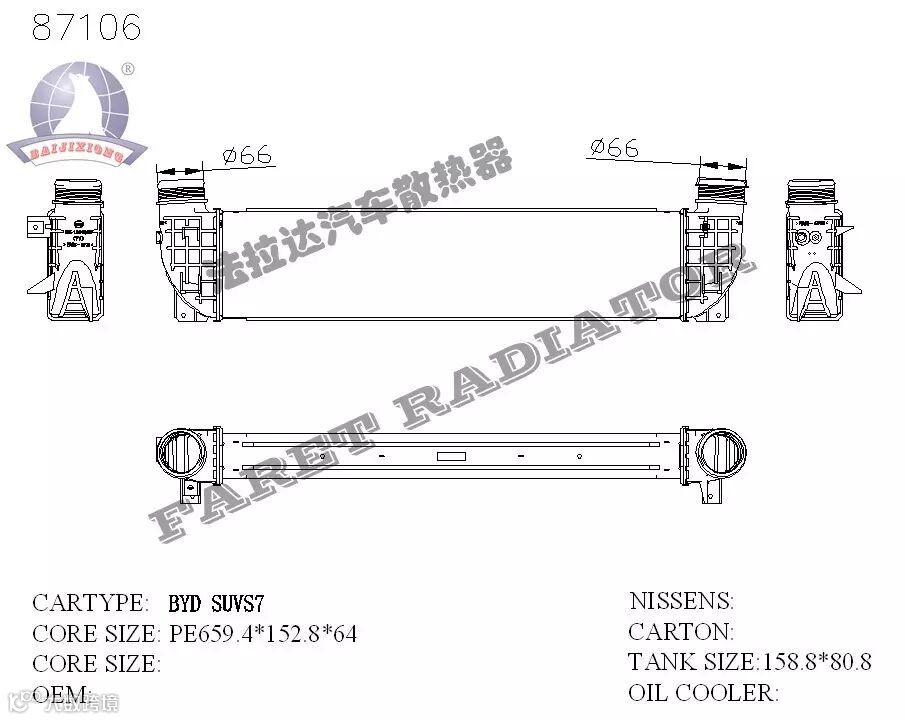 87106适用车型:BYD SUV S7 中冷器 比亚迪