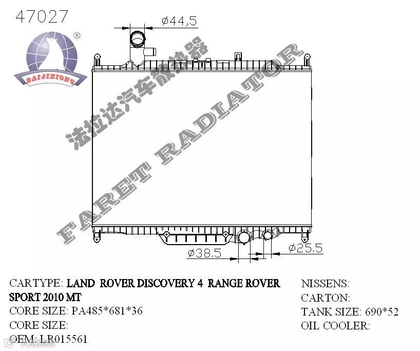 法拉达汽车汽车散热器不断进取创新,新产品研发能力不断加强,现发布部分新产品型号如下,欢迎各界顾客朋友前来咨询!