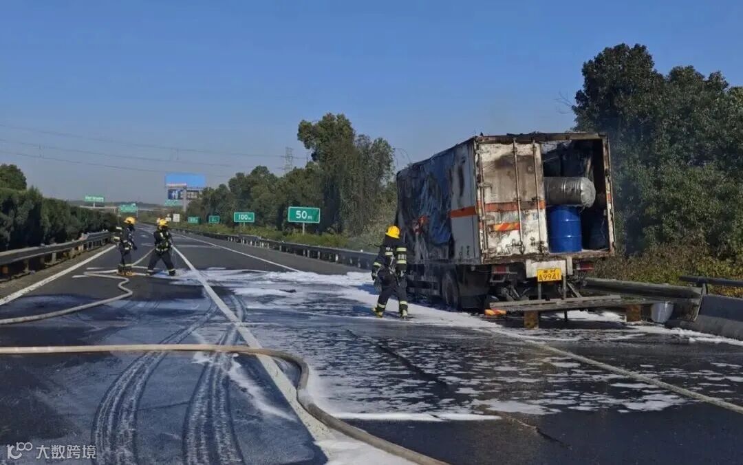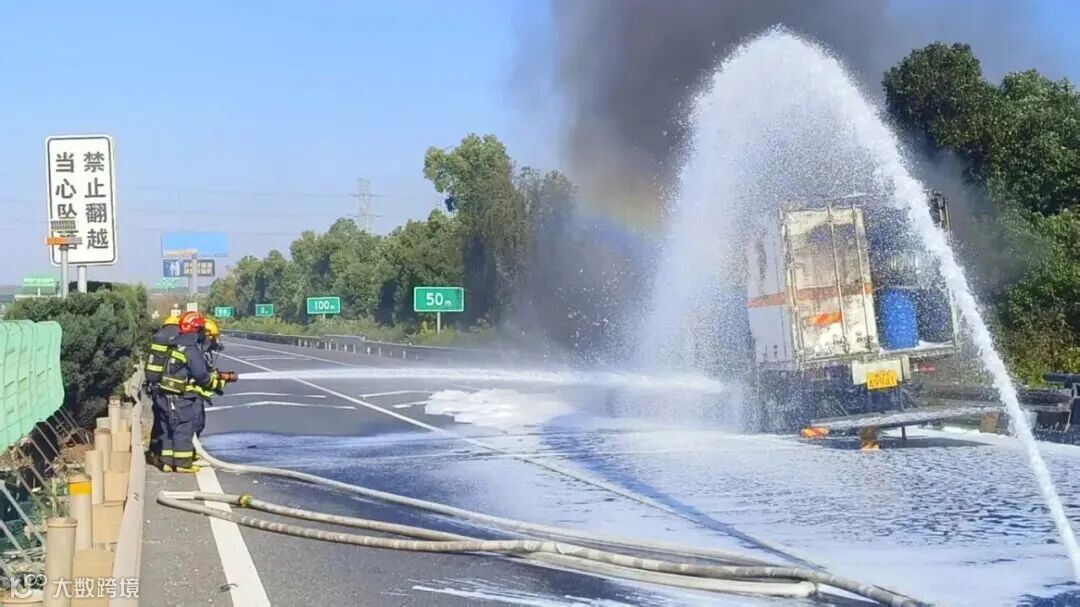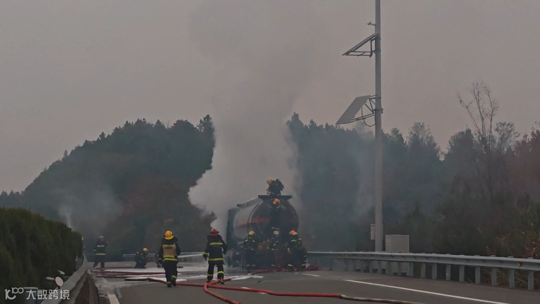 事件:12月2日,江西上饶市消防救援支队指挥中心接到报警上万高速上饶往万年方向一辆运载30多吨盐酸的槽罐车轮胎起火。