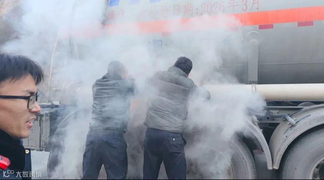 一浓硫酸罐车后轮冒出青烟