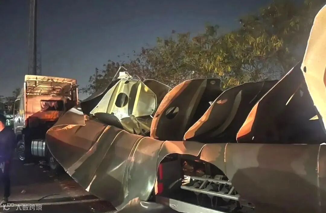 一辆卡车后部的空油罐发生爆炸
