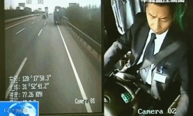 一辆泥头车突然追尾前方货车,导致货车前行追尾前方另一辆挂车,事故造成三车追尾、一人受伤。行车记录仪显示,泥头车司机在事故前7秒内2次低头看手机。