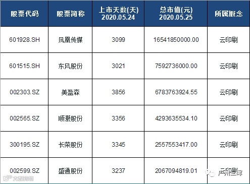 2020年最新统计,中国a股市场的云印刷概念上市公司一共有6家,其中2只股票在上交所交易,另外的4只股票在深交所上市。