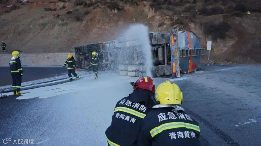 事件:1月1日7时22分许,青海省黄南藏族自治州同仁市往泽库方向G213国道45公里处,一辆34吨柴油罐车发生侧翻泄漏。