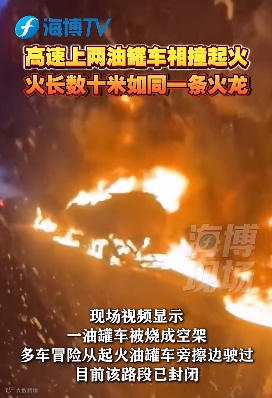 据了解,秦滨高速沧州黄骅路段两辆油罐车撞上了,引发大火,火势蔓延长达几十米,导致很多收费站以及高速入口限开车道和部分封闭,有车辆压车缓行,目前火势已扑灭,有网友称人员只是轻微烧伤,人员平安那就是万幸,具体事故请关注后期通告。小编提醒:高速路上危险化学品运输不同于普货运输,一定要非常谨慎,夜间行车一定要注意安全,杜绝疲劳驾驶,注意控制车速,前后两车应保持足够的安全距离并控制车速,从而避免行车过程中追尾事故的发生。行车请以“稳”为主。