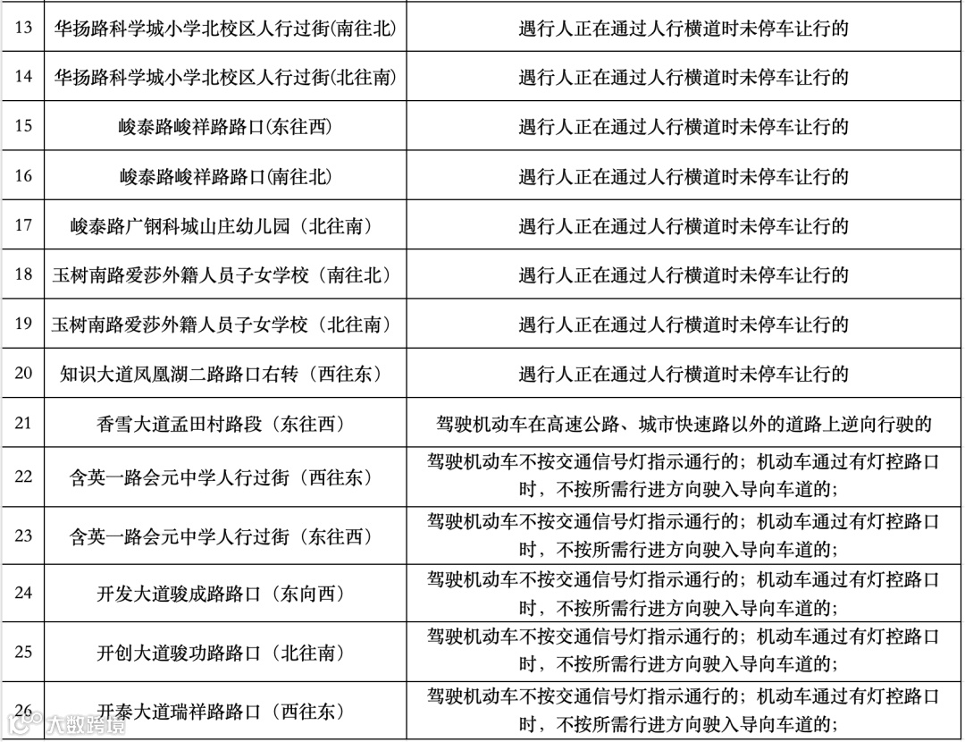 其中,26套交通技术监控设备将于2025年10月31日起依法对有交通违法行为的车辆进行拍摄取证执法。