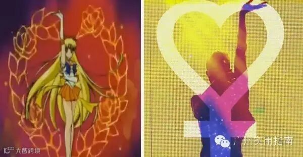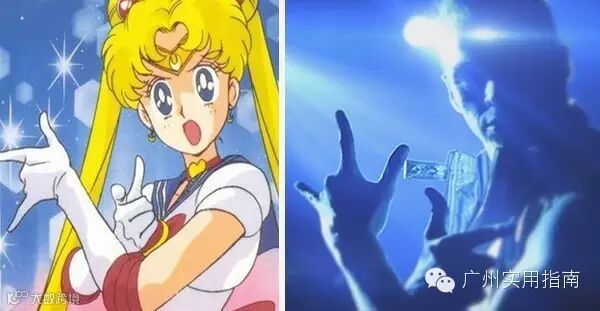 原作中的水手月亮、水星、火星、木星、金星等角色通通都有,只不过是性转版本,但动作的还原度还是很高,来跟原作对照一下: