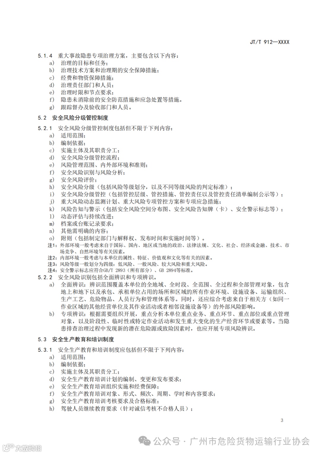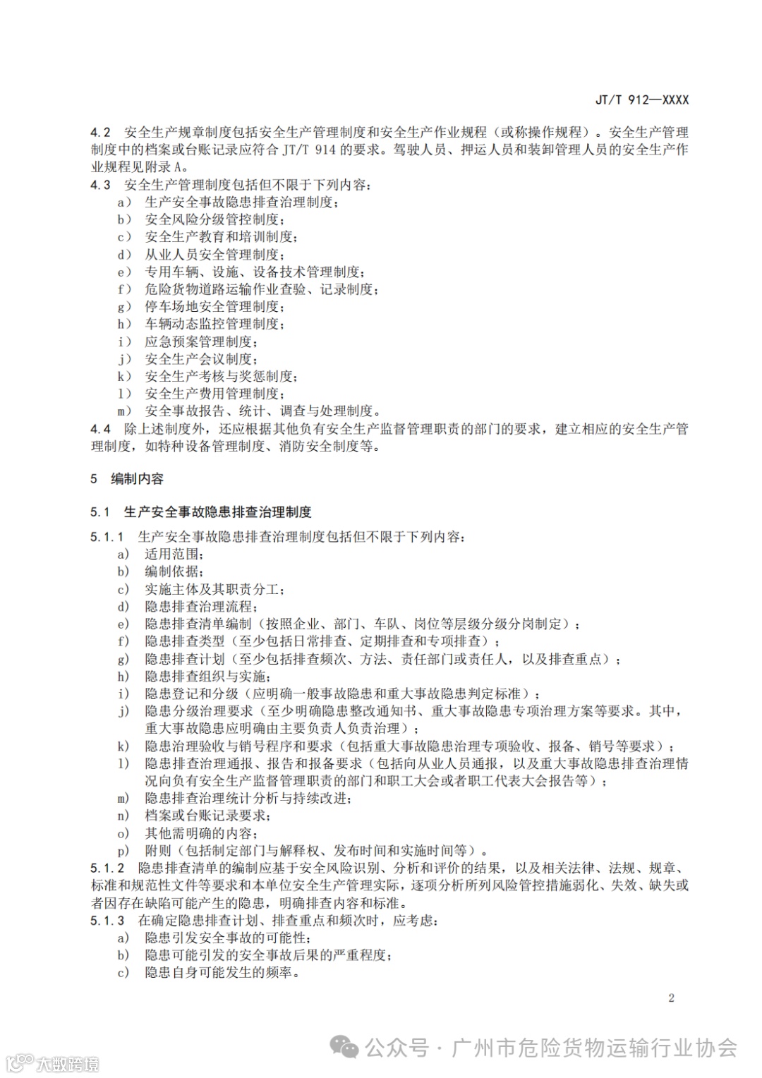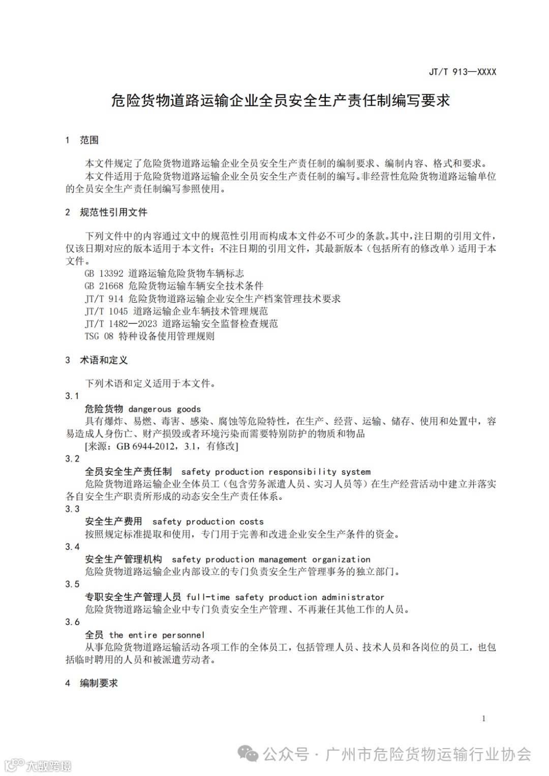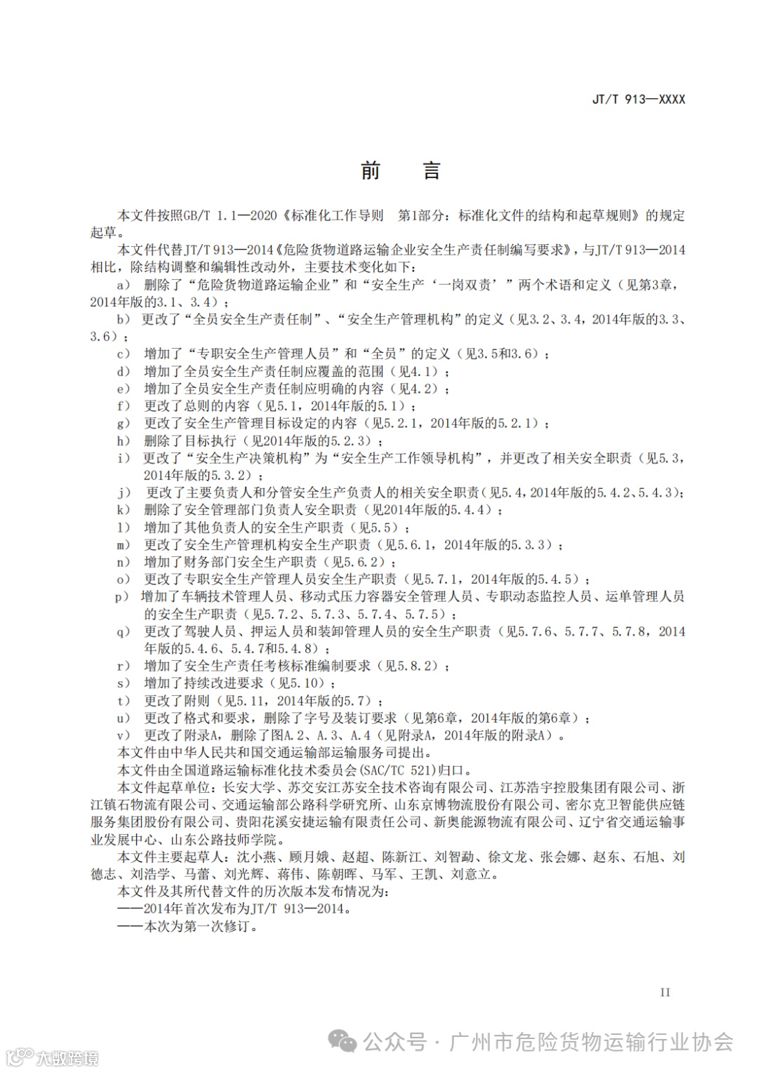 根据交通运输标准化计划的安排,由长安大学牵头修订的行业标准《危险货物道路运输企业安全生产管理制度编写要求》(计划号:JT 2023-08)和《危险货物道路运输企业全员安全生产责任制编写要求》(计划号:JT 2023-09,计划名称:《危险货物道路运输企业安全生产责任制编写要求》)已完成征求意见稿。按照有关规定,现公开征求意见。请研究提出修改意见,并于2024年7月4日前反馈至标准起草组,逾期视为无意见。如有对技术指标的重大意见,请说明论据或提出技术经济论证。