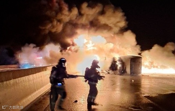 事件:韩国12月23日晚9时50分许,位于韩国京畿道平泽市浦升邑的西海岸高速公路上一辆装载有3万升煤油的油罐车发生意外侧翻后起火,造成车内司机当场死亡。