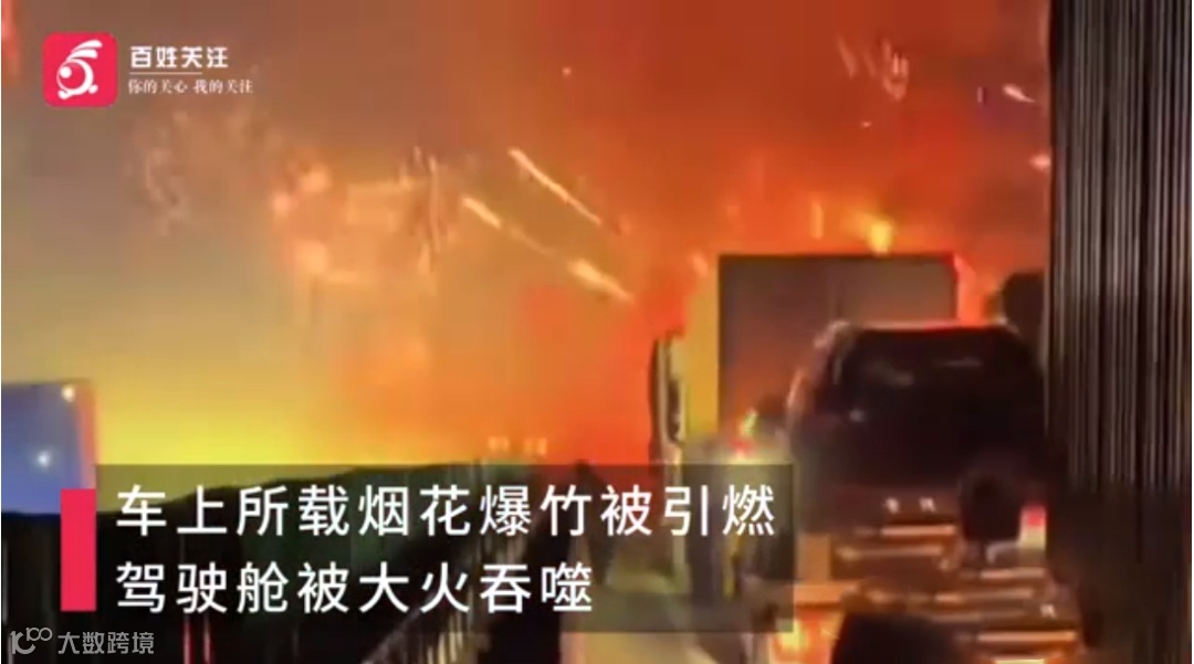 事件:12月23日,河北秦皇岛京哈高速卢龙县双望镇附近路段发生惊险一幕,一辆运载烟花的货车起火。