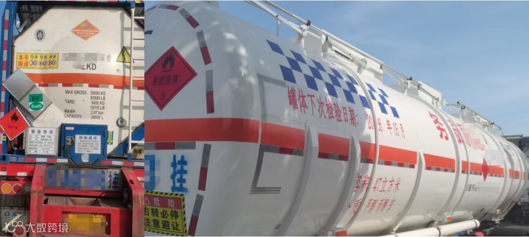 罐体两侧及后部应按运管部门规定粘贴橙色反光带及反光标志、车辆标识,悬挂与运输货物相匹配的安全告示牌和标志牌。