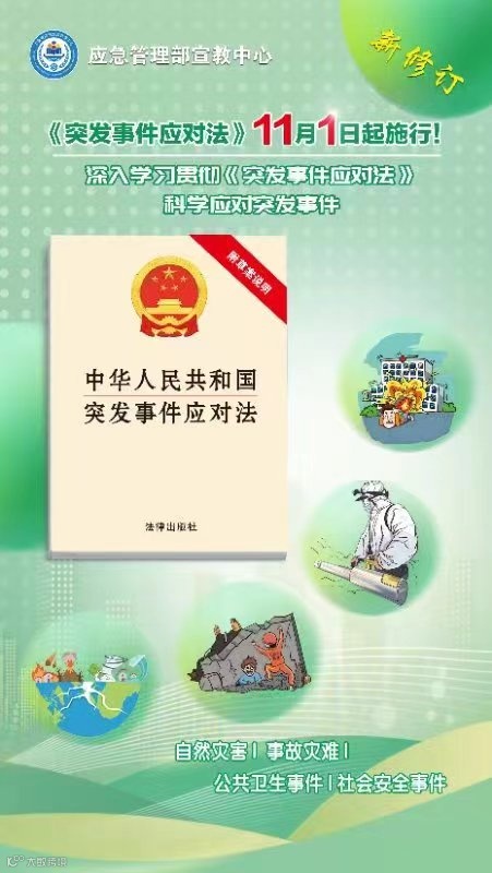 《中华人民共和国突发事件应对法》是我国应急管理领域一部重要法律,该法的颁布施行对提高全社会应对突发事件能力,保护人民生命财产安全,维护国家安全、公共安全、环境安全,优化国家应急管理能力体系建设,推动高水平安全和高质量发展具有重要意义。法律对应对突发事件所要开展的新闻宣传、信息发布、教育训练等工作作出明确规定。