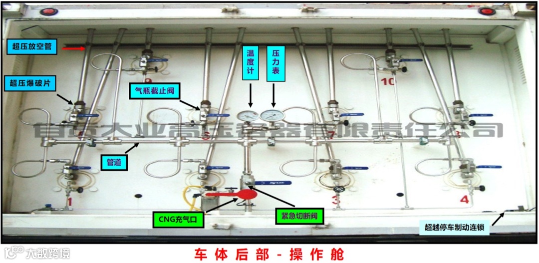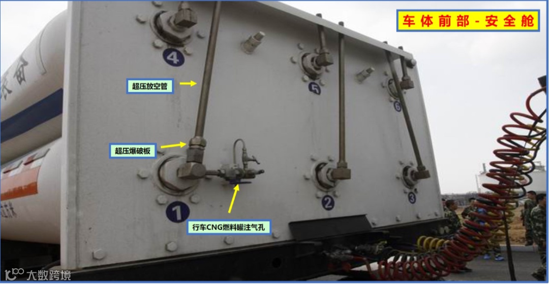 注意:严禁在CNG长管拖车尾部停留或者部署力量,防止相关人员受到高压气体或阀门管线等意外打击伤害。